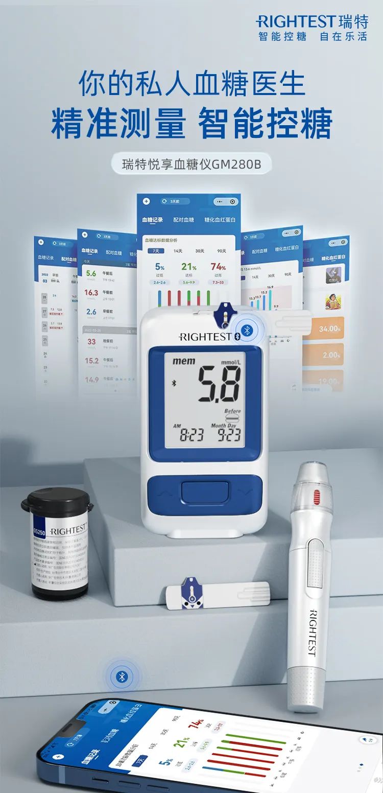 為滿足更多糖尿病患的消費需求,和免去奔波醫院的漫長路程和等待。華廣瑞特在確保每一次血糖量測的精準、穩定、快速的基礎上,于2022年6月攜新品GM 280B悅享血糖儀全新上市精準賦能下沉市場,真正打造人人都能實現居家悅享,精準便捷的個人血糖健康管理。