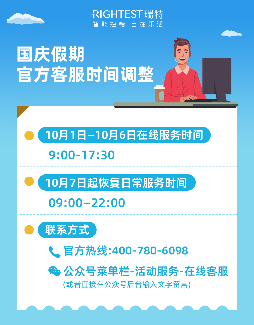 最新動態(tài) 新聞資訊 客服時間調(diào)整|國慶假期我堅守崗位 你健康過節(jié)